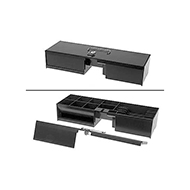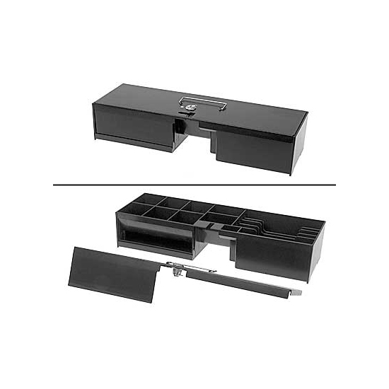 Bei der Vectron DR50 handelt es sich um eine Klappdeckelschublade aus Metall mit herausnehmbarem, separat abschließbarem Einsatz. Der Einsatz verfügt über sechs variable Querfächer zur senkrechten Geldscheinlagerung und acht fixe Münzfächer.