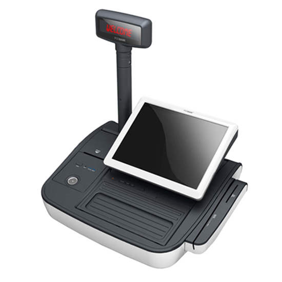 So können auf Wunsch die üblichen Komponenten Tastatur, Touchscreen, Thermobondrucker, Magnetkarten- und Chipkartenleser und Kundenanzeige in einer Lösung betrieben werden, die nicht mehr Standfläche einnimmt, als die Stellfläche eines vergleichbaren Touch-PC-Systems.