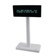 Das Kundendisplay VFD222 ist eine Kundenanzeige auf VFD-Basis (Vakuum Fluoreszierendes Display) mit einer Anzeige von 20 Spalten in 2 Zeilen. Seine Anschlussmöglichkeiten unterstützen sowohl den Anschluss über RS232 seriell als auch über USB. So kann das VFD222 ohne jeden Kabelwechsel oder nötigen Umbau an eine Vielzahl von möglichen Kassensystemen betrieben werden.